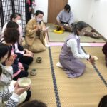 また、お茶の先生をお招きして、『お茶会』を開催しました。どんぐりの家の1部屋が優雅なお茶席に大変身。着物姿の先生とお弟子さんたちの立ち居振る舞いを見たり、お話を聞いたりし、本格的なお茶の味とおごそかな雰囲気とでいつもの活動とはひと味もふた味も違う活動を楽しみました。