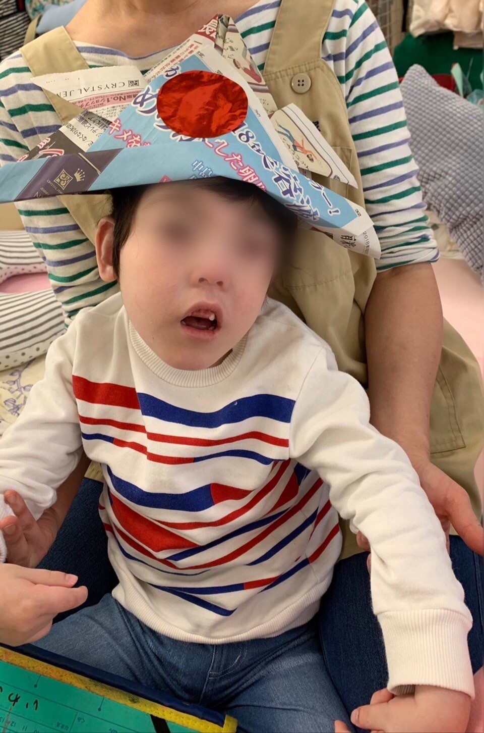 兜を折ってかぶったり、可愛いこいのぼりも出来上がりました。