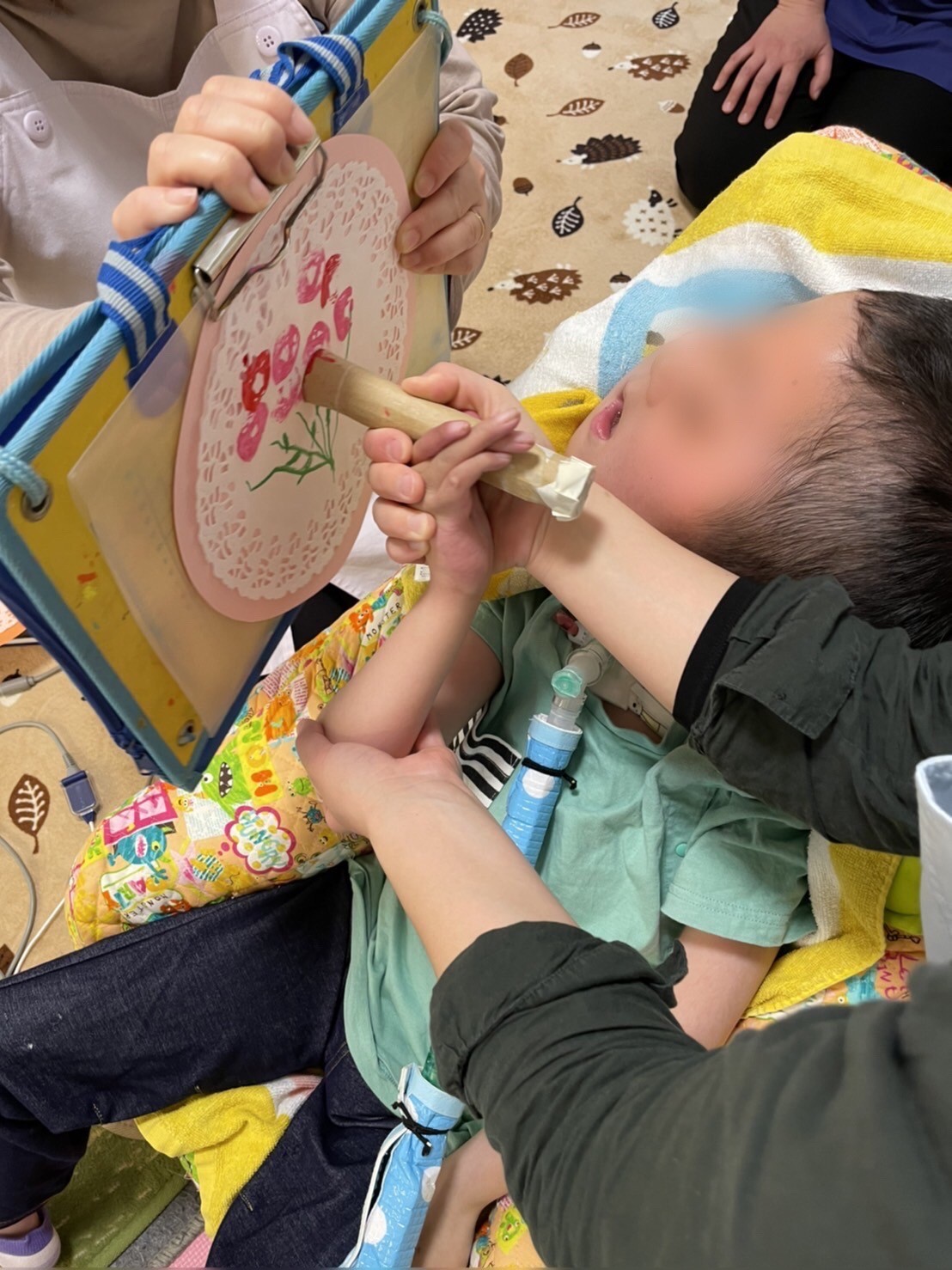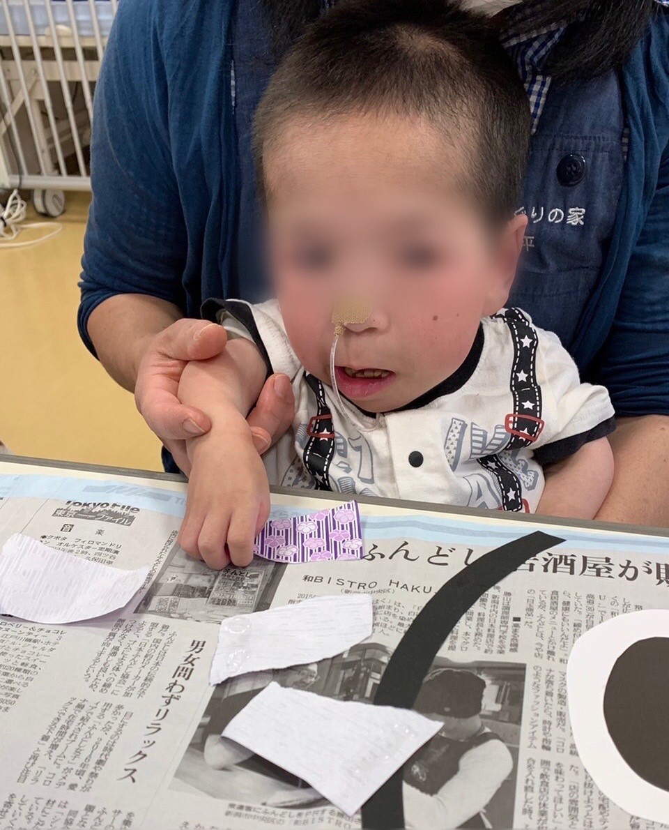 新聞紙を使った製作では、こどもの日を楽しみました。