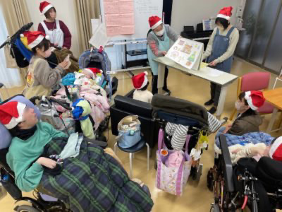 どんぐりの家恒例のクリスマス会をしました。今年は、クリスマスのお話をスケッチブックシアターで聞きました。「♫ジングルベル♪」の音楽とともに歌やダンス、ジェスチャーゲームをして大盛り上がりでした。サンタさんとツリー君が登場し、素敵なクリスマスプレゼントをもらいました。